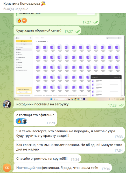 (т.к. часть загружена в ВКонтакте и YouTube), по ссылке на облако крайние работы из Нячанга. Также многие работы на монтаже,
